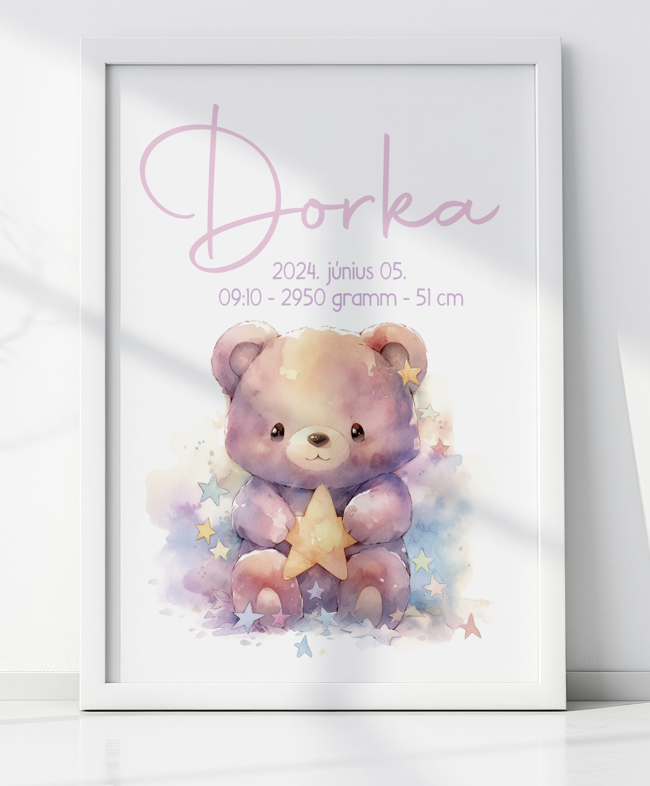Minden alkotásunkat úgy terveztük meg, hogy minden fontos emlék helyet kapjon rajta: a pontos születési idő, a súly, a hossz és természetesen a baba neve is. A széles választéknak köszönhetően különböző témák és stílusok közül válogathatsz – a letisztult skandináv stílustól a vidám állatfigurás grafikákon át a modern minimálig, így biztosan megtalálod a gyerekszoba hangulatához illő designt.