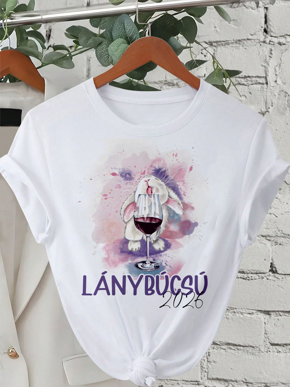 Lánybúcsú egyedi póló – nyuszis grafikával