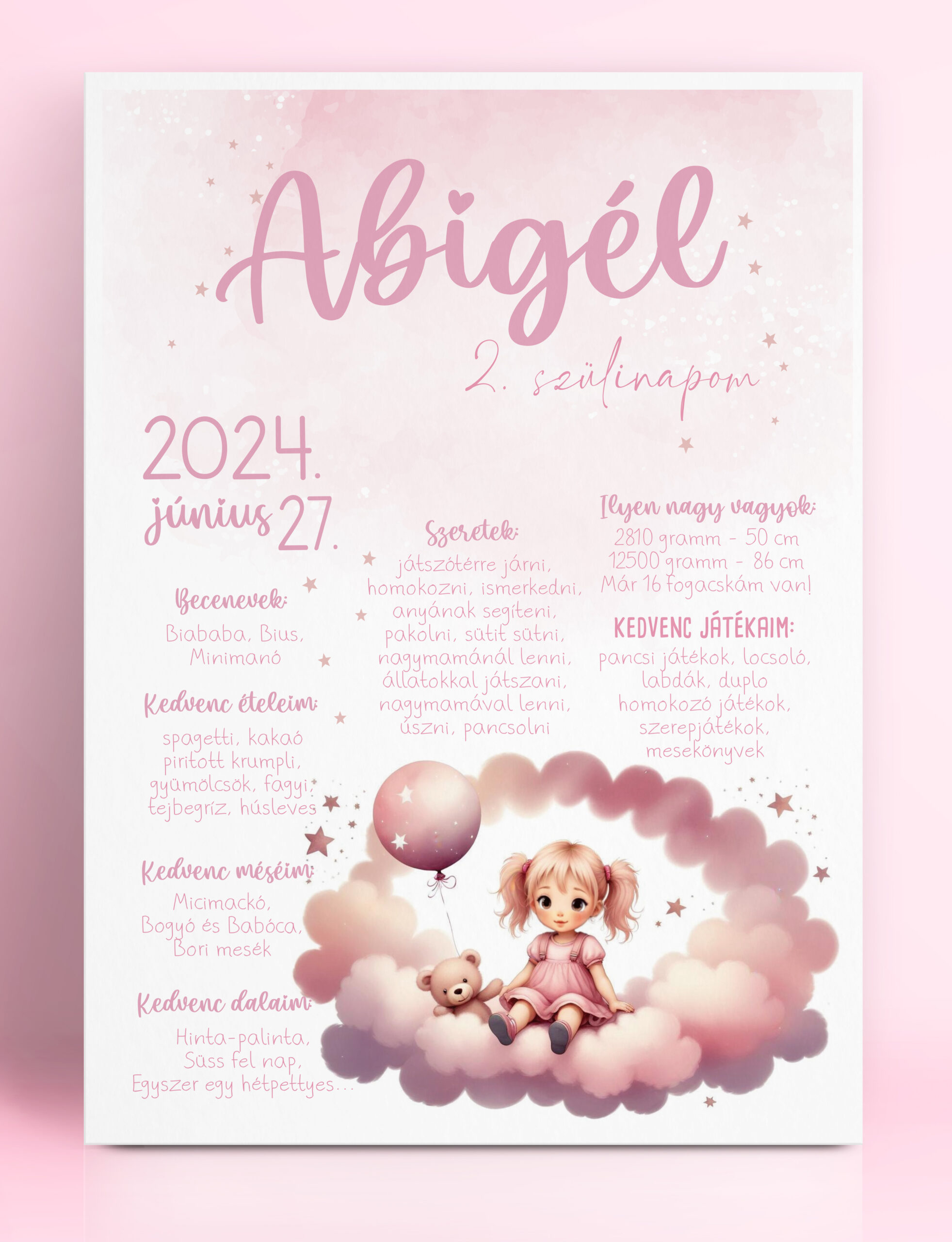 Szülinapi plakát – rózsaszín felhő